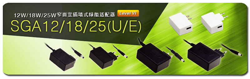 明緯新推出SGA12/18/25(U/E)系列,搭配已上市的SGA40/60系列,明緯現(xiàn)已擁有完整12~60W窄面寬插墻式綠能適配器產(chǎn)品線。SGA12/18/25三系列符合國際最新能耗標(biāo)準(zhǔn)(EISA 2007/DoE Level VI),具備低於0.075W超低空載待機(jī)消耗及最高88.5%工作效率,不論在空載待機(jī)時或操作中皆可充分達(dá)到節(jié)能減碳之目的。規(guī)劃有歐式(E type)及美式(U type)兩種輸入插頭,機(jī)身采窄面寬設(shè)計(12W:27.4mm寬,18W/25W:32mm寬)可有效避免占用相鄰AC插座;便攜小巧且使用時不需額外添購搭配之AC線材。擁有5~48V多種輸出電壓機(jī)型,合適應(yīng)用於各式各樣之消費性電子產(chǎn)品、通訊用品、辦公/商業(yè)設(shè)備、工業(yè)設(shè)備或針對需要符合最新能耗標(biāo)準(zhǔn)之各類設(shè)備或系統(tǒng)。