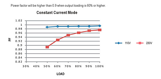 具功因矯正功能機(jī)型,負(fù)載需大于規(guī)格書(shū)PFC定義范圍,功率因子與輸出負(fù)載關(guān)系如圖(1)所示,會(huì)依機(jī)型定義不同,一般設(shè)計(jì)值為75% LOAD以上。